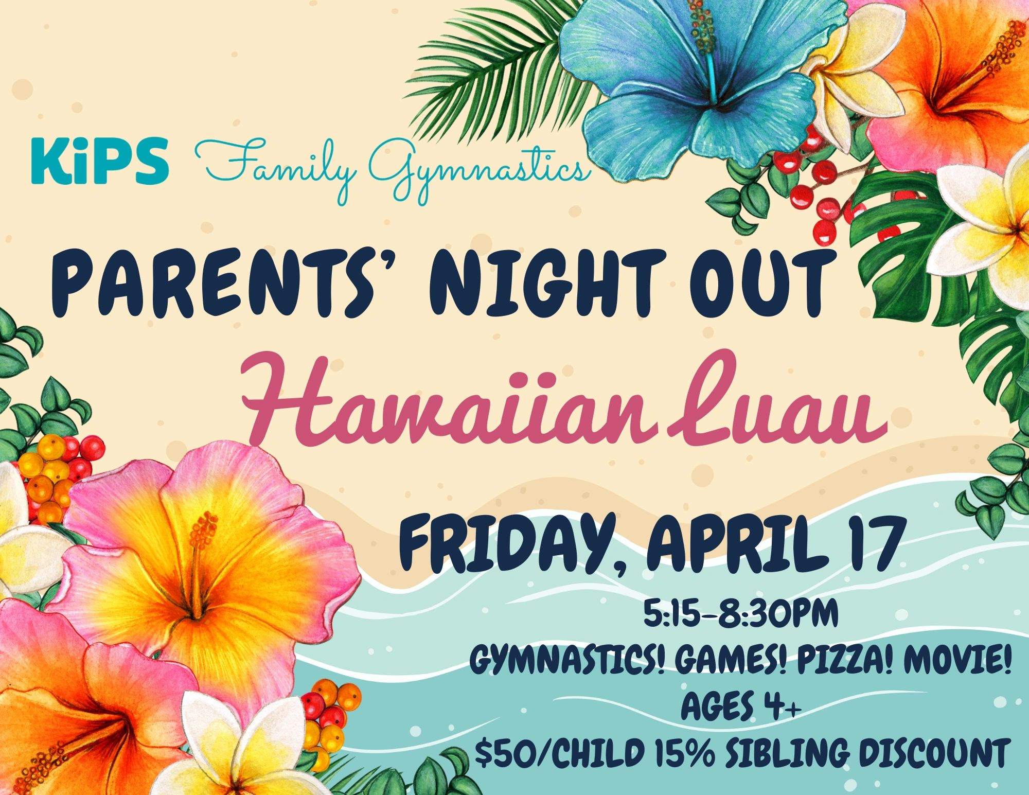 Stick the landing on your night out! Drop the kids at KiPS for a Hulu-themed Parents’ Night Out—flips, games, and movie-inspired fun included. You can relax and do your thing while they tumble the night away!